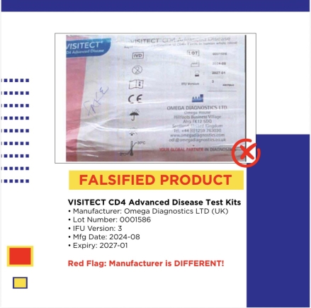For patients living with HIV, accurate CD4 testing is critical for monitoring disease progression and determining when to initiate or switch antiretroviral therapy. A falsified test kit that produces inaccurate results could mean the difference between life-saving treatment and catastrophic treatment failure.